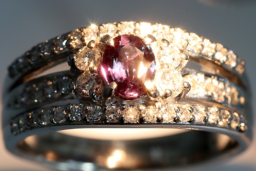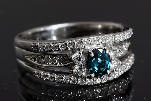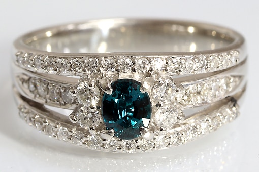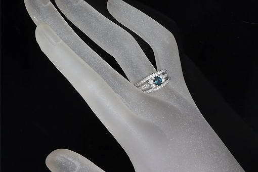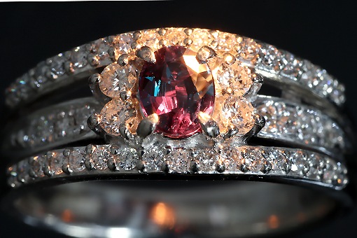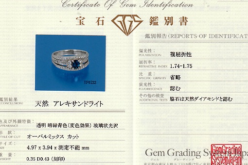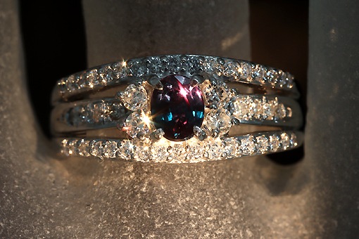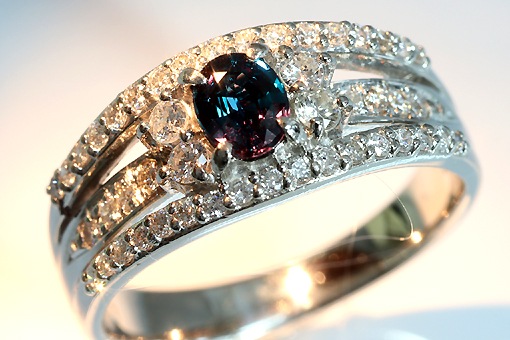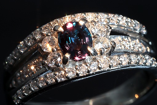 色変わりの鮮やかなアレキサンドライトは0.35カラット。