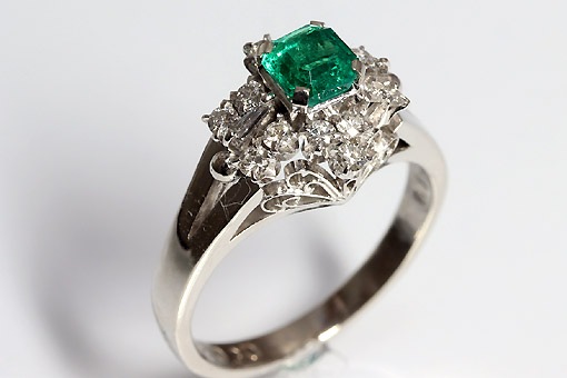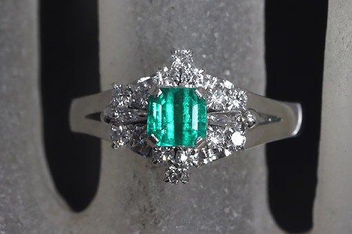 エメラルド&ダイヤモンドのセミアンティークリングです。