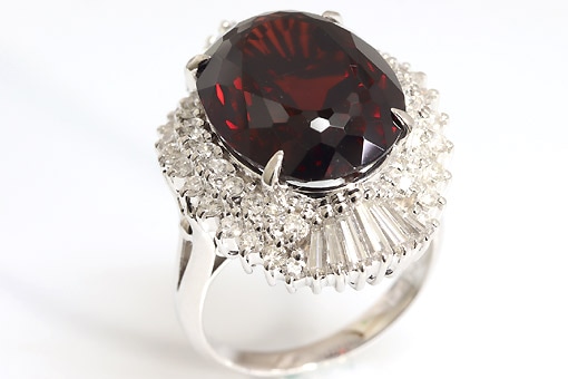 A586-25n0318【ガーネット 15.34cts】Pt900ダイヤモンドリング