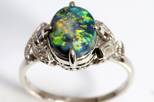 A584-25n0008【ブラックオパール 1.82cts】Ptセミアンティークダイヤリング