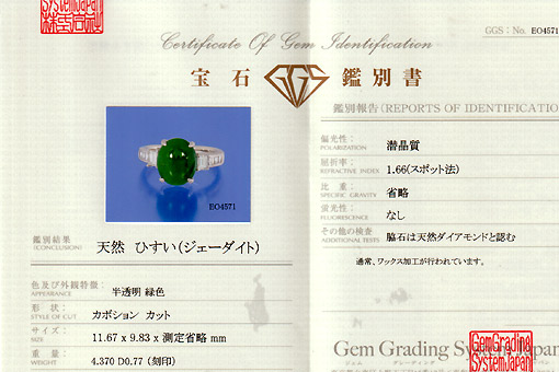 翡 翠 : 4.370 カラット