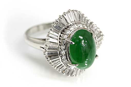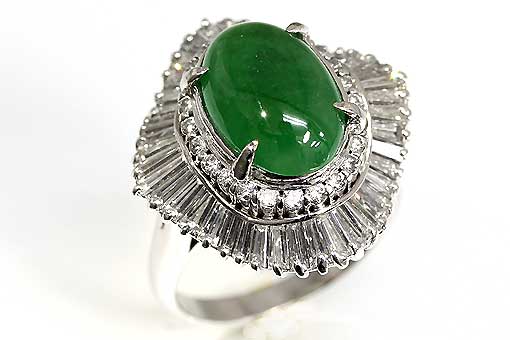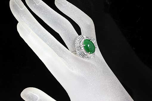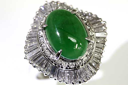 2種類のカットダイヤで取巻いた5カラットUPの天然翡翠の