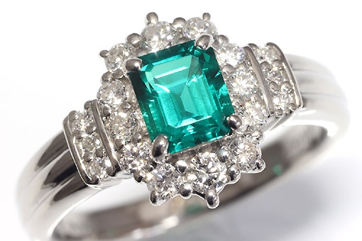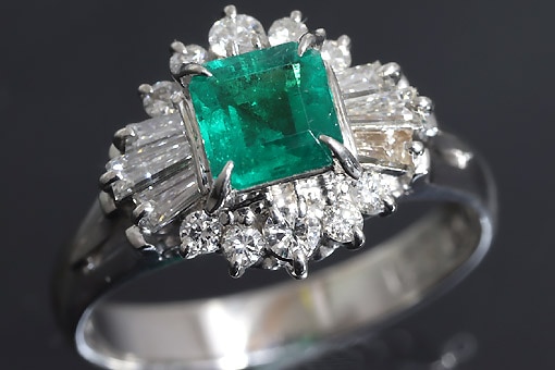 A586-25n0285【エメラルド 0.76cts】Pt900ダイヤモンドリング