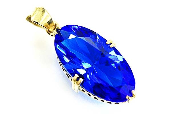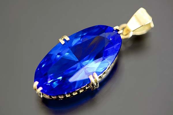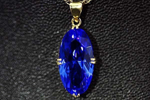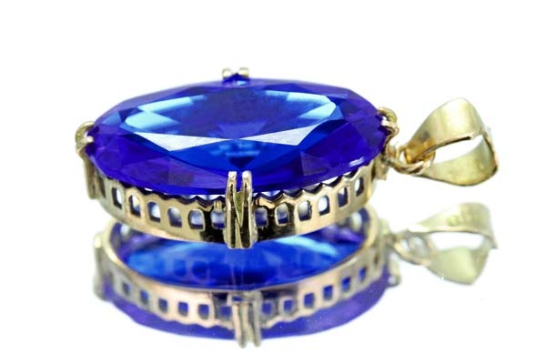 コバルトブルーの合成石を手作り枠にセットした懐かしのジュエリー。