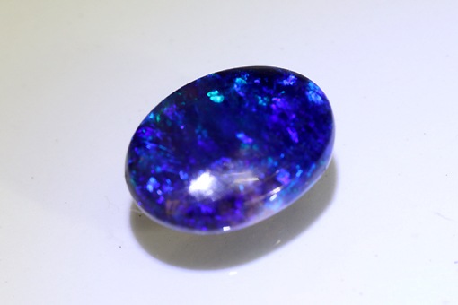光りを当てると濃いブルー系の生地にブルー、パープルの遊色が楽しめます。