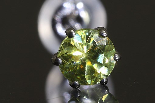 半端に余っていたピアス枠を使い、片方スフェーンピアスを作りました。 0.30カラットのスフェーンはグリーンイエローカラーで光を受けると 綺麗なファイアが煌めきます。 金属内包シリコンキャッチ付き。