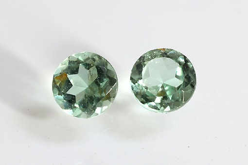 ライムグリーントルマリンのペアルースです。 ルースは直径約 3.8ミリ。 2石 合計0.45カラットです。 天然のインクルージョンがあります。 画像でご確認下さい。 ジュエリーに加工されると可愛らしいジュエリーに仕上がりますよ♪