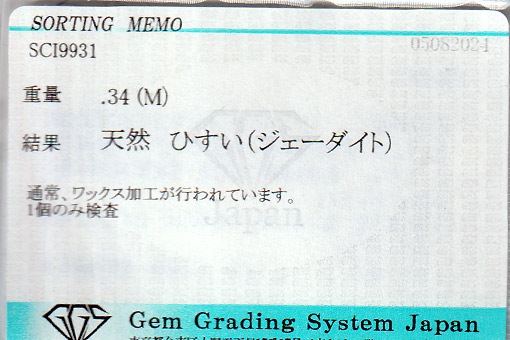 翡翠はロウカン系の色目で上質な物。
