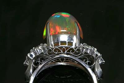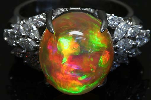 | このオパールのリングは、おとぎの世界でお妃さまの指を飾っていたのではないか? 虹を閉じ込めた「珠」なのではないか? 「遊色」が固まってできたのではないか? そんな筆舌に尽くし難い、夢の様な美しいオパールのアンティークリングです。 まず【8cts UP】のオパールはもちろん、取巻きのダイヤモンドもマーキスとラウンドの組み合わせで、その配置のデザインは卓越。 エレガントに仕上がっています。 アンティークジュエリーです。オパールは大変良い状態!です。 光の角度によって多彩な表情を変えるオパール特有の「遊色効果(Play of color)」は、ルースの中に吸い込まれるような異次元の世界が広がっているようにも思える美しさ。 これほどまでのオパールは、現在なかなか市場に出回らなくなりました。 久しぶりの出逢いです。 オパールはベースが抜群の透明感ある淡いイエローからオレンジカラー。 自然光でも、十分に遊色を堪能できますし、ライトの下ではトップページの様な鮮やかに湧き立つように煌めきます。 石座の唐草、アームの部分的な艶消しなどの技法は、このオパールのための誂えである証です。 担当者個人的意見としては、これは二度と手に入らないであろう…逸品です♪ ちょっとでも気になる方は、お気軽にお早目にお問い合わせ下さい。 ※ 9/17からの決算Saleの対象! お見逃しなく。 |