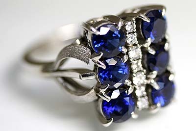 φ約4.5ミリのブルーサファイアは、インクルージョン等も確認し難く色ムラもなく綺麗なものばかり。